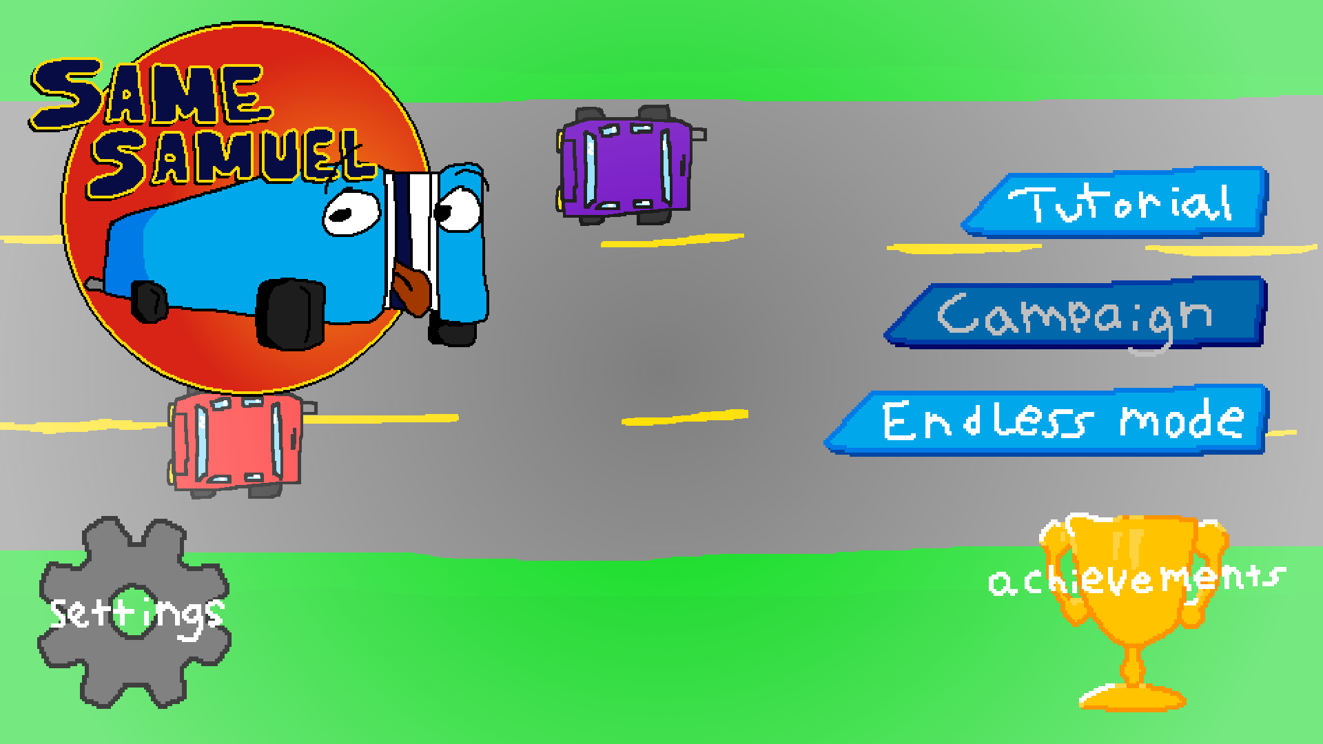 Play as a car named "Same Samuel". One problem, Same Samuel is so light, and sensitive, that ONE touch can absolutely destroy him and send him into flames. Play as Same Samuel, and don't let him crash! Can you do it?